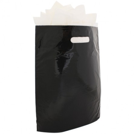 De draagtassen zonder bodembouw hebben GEEN versterkte handgreep Deze plastic tassen zijn gemaakt van 50 micron LDPE poly, wat zorgt voor een glanzende uitstraling. Het materiaal is zwart ingekleurd.De bovenzijde van deze plastic tassen is voorzien van een uitgestanst handvat met een kleefblad versteviging voor extra stevigheid. De onderzijde is voorzien van een bodem welke uitklapt zodra de tas gevuld wordt.