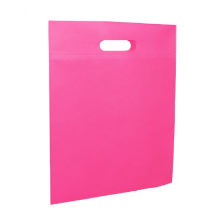100 grs. non woven Non woven draagtassen zijn gemaakt van 80 grs non woven. De kleur van het materiaal is fuchsia.Deze tassen zijn uitgevoerd met een uitgestanst handvat, welke extra verstevigd door middel van een omslag.