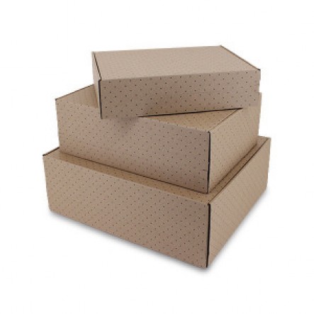 Verzenddozen voor uw webshop. De luxe express verzenddozen zijn gemaakt van stevig bruin enkellaags golfkarton. De buitenzijde is voorzien van een all-over zwarte stippen dessin.