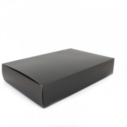 De luxe overhemddozen zijn gemaakt van wit papier en zijn mat gelamineerd. De kleur van de dozen is zwart.De dozen zijn aangepast aan de vorm en grootte van een opgevouwen overhemd. De dozen zijn voorzien van een losse deksel.