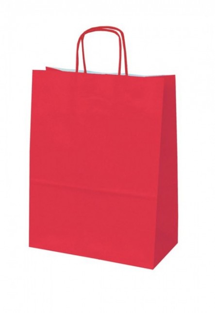 draagtassen in kraft Deze papieren tassen zijn gemaakt van 100/120 grs. wit kraft. Het materiaal is onbewerkt waardoor deze tassen een stoere en ecologische uitstraling hebben.De buitenzijde van de tassen is all-over rood bedrukt. De binnenzijde van de tas is wit.